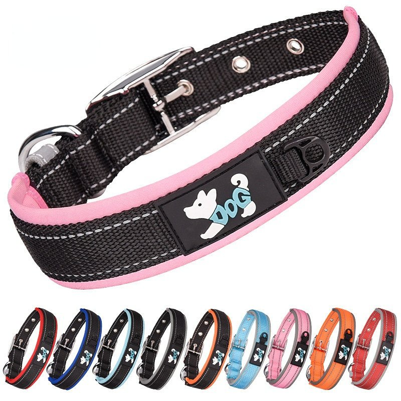 Pet dog collar; diving cloth reflective nylon collar; medium and large dog collar