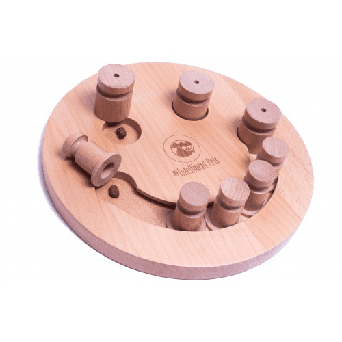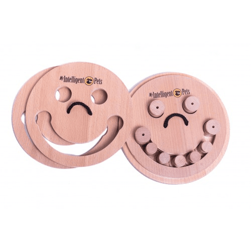 Length: 10.00 Width: 10.00 Height: 1.00 Smile It's a motivational game of high difficulty level. It combines activities of lifting and sliding the parts in order to reach the treats. The design of the game allows for control by the pet parent of difficulty degree from one paw to 3 paws by removing the plates stack on top of each other. This game is recommended for medium size and large dogs. According to dog's behaviorists 10 minutes of mental stimulation with employment of interactive game equivalents to 1 hour of physical exercise. This is especially important for the dogs living in large cities where long walks are difficult and impossible, senior dogs with ailments that do not allow them for prolong outings and those living in cold climates. where going outside can put animal's health at risk. Additional information: Dimensions: 12"x5"x3" Weight: 4lb All our games and puzzles are made from certified wood covered with water-based varnish that 8s not harmful to humans and animals. Please keep the game dry and free of water exposure, as the wooden pieces may swell otherwise. Use only dry treats for playing with our games. Keep out of reach of small children since removable parts can be a choking hazard to them.