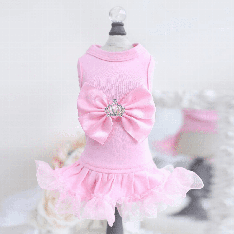 Be ready for any recital with the Hello Doggie Royal Princess Dress. Fashioned with satin bow and accent with a lace trim with royal crown.