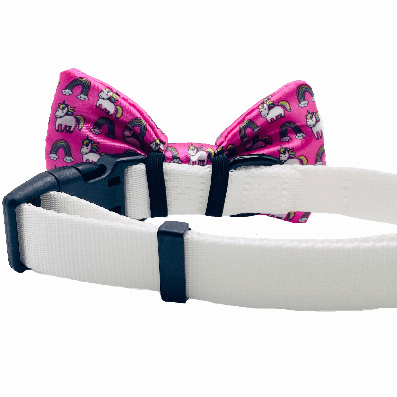 Our bow ties are made with high-quality fabric and thickly sewn; contributing to its durability. All bow ties are 2" x 4" and fastens securely over any dog collar easily with the two elastic loops on the back of the bow tie - as seen in pictures. Collar not included.