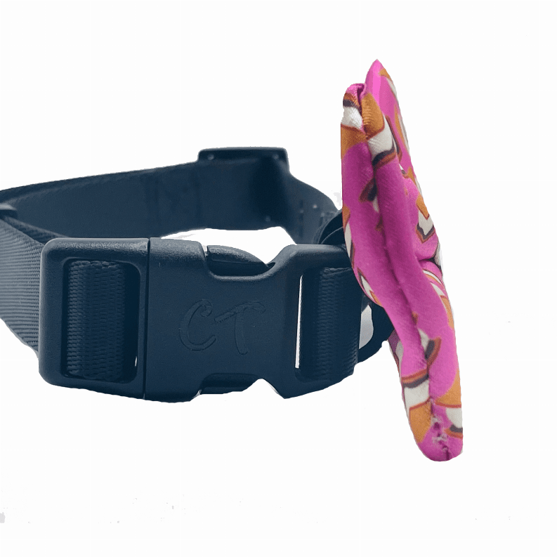 Our bow ties are made with high-quality fabric and thickly sewn; contributing to its durability. All bow ties are 2" x 4" and fastens securely over any dog collar easily with the two elastic loops on the back of the bow tie - as seen in pictures. Collar not included.