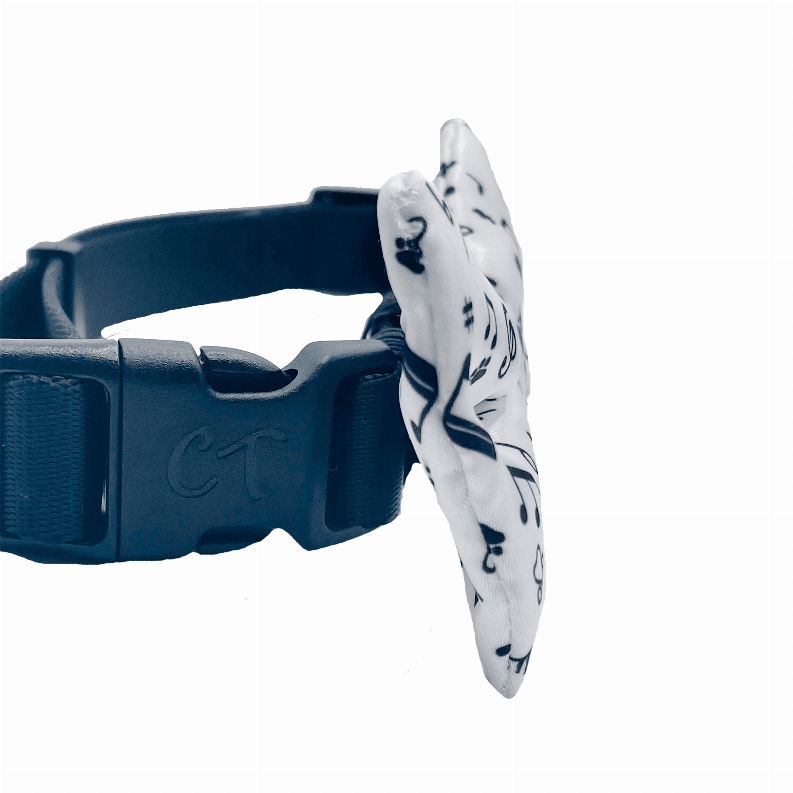 Our bow ties are made with high-quality fabric and thickly sewn; contributing to its durability. All bow ties are 2" x 4" and fastens securely over any dog collar easily with the two elastic loops on the back of the bow tie - as seen in pictures. Collar not included.