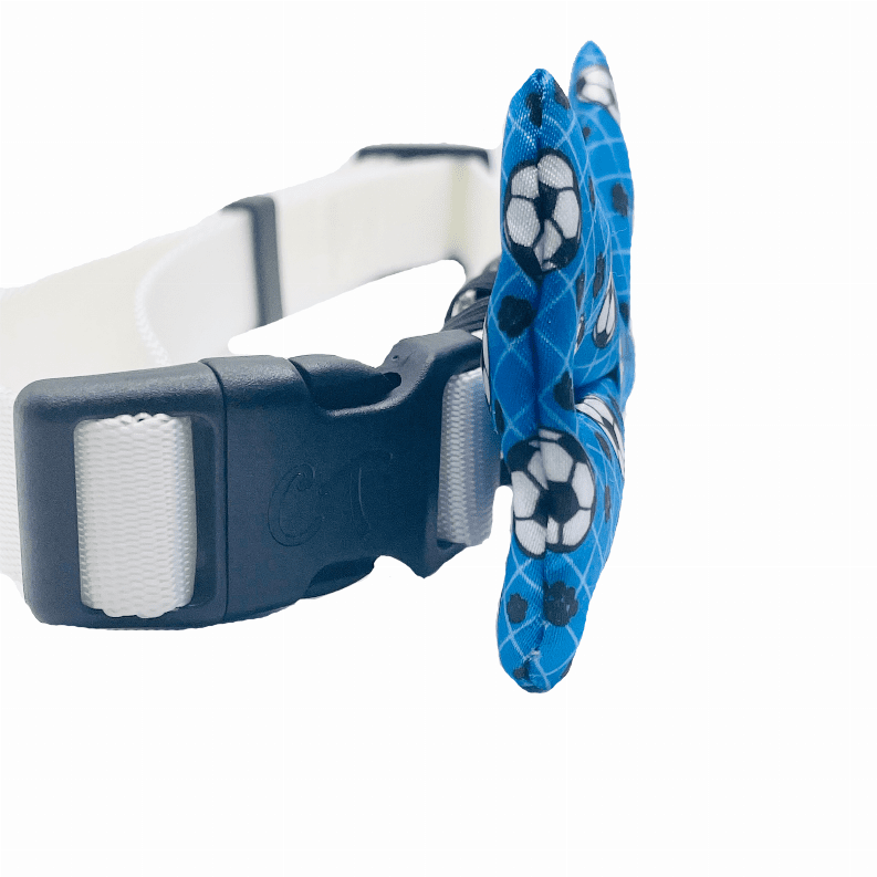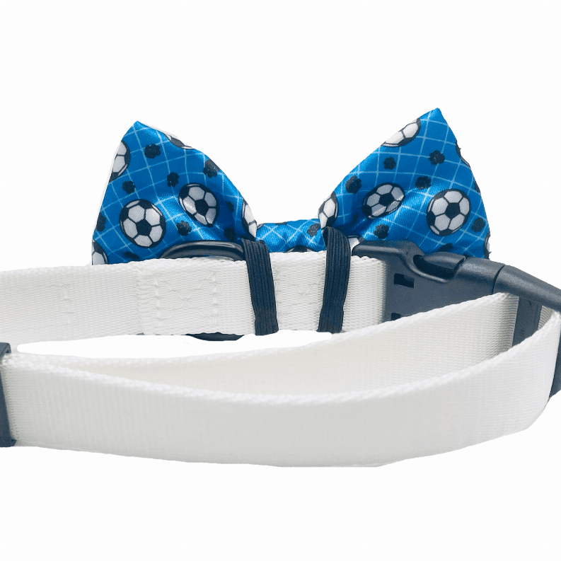 Our bow ties are made with high-quality fabric and thickly sewn; contributing to its durability. All bow ties are 2" x 4" and fastens securely over any dog collar easily with the two elastic loops on the back of the bow tie - as seen in pictures. Collar not included.