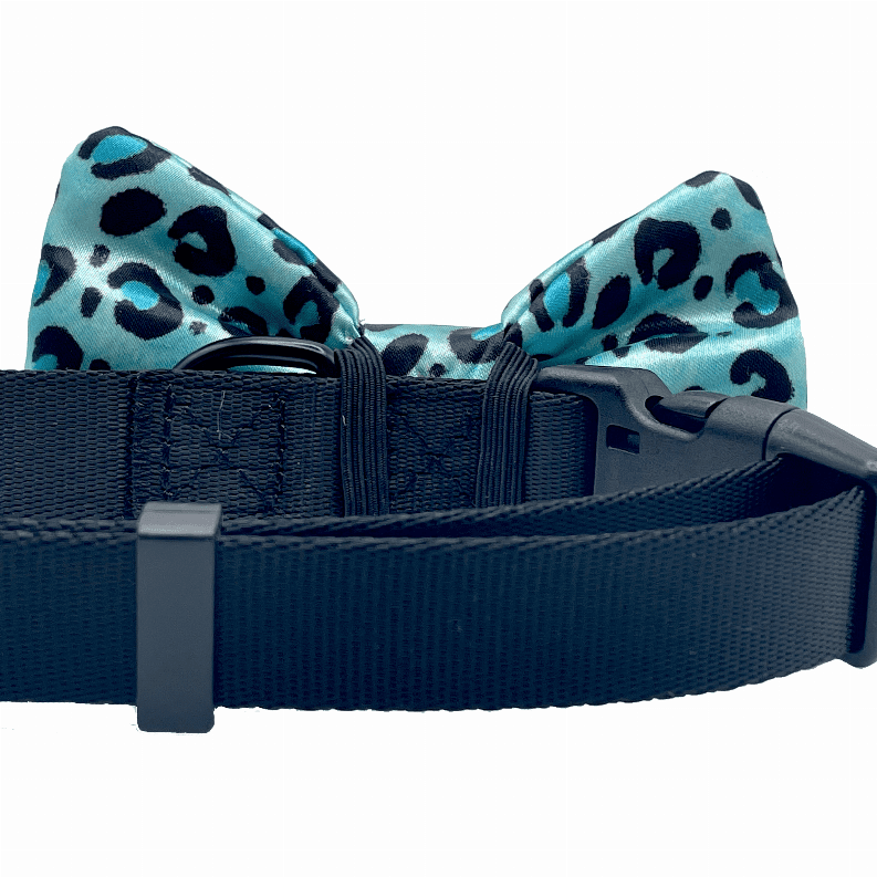 Our bow ties are made with high-quality fabric and thickly sewn; contributing to its durability. All bow ties are 2" x 4" and fastens securely over any dog collar easily with the two elastic loops on the back of the bow tie - as seen in pictures. Collar not included.