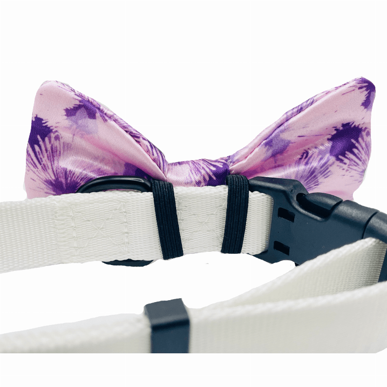 Our bow ties are made with high-quality fabric and thickly sewn; contributing to its durability. All bow ties are 2" x 4" and fastens securely over any dog collar easily with the two elastic loops on the back of the bow tie - as seen in pictures. Collar not included.