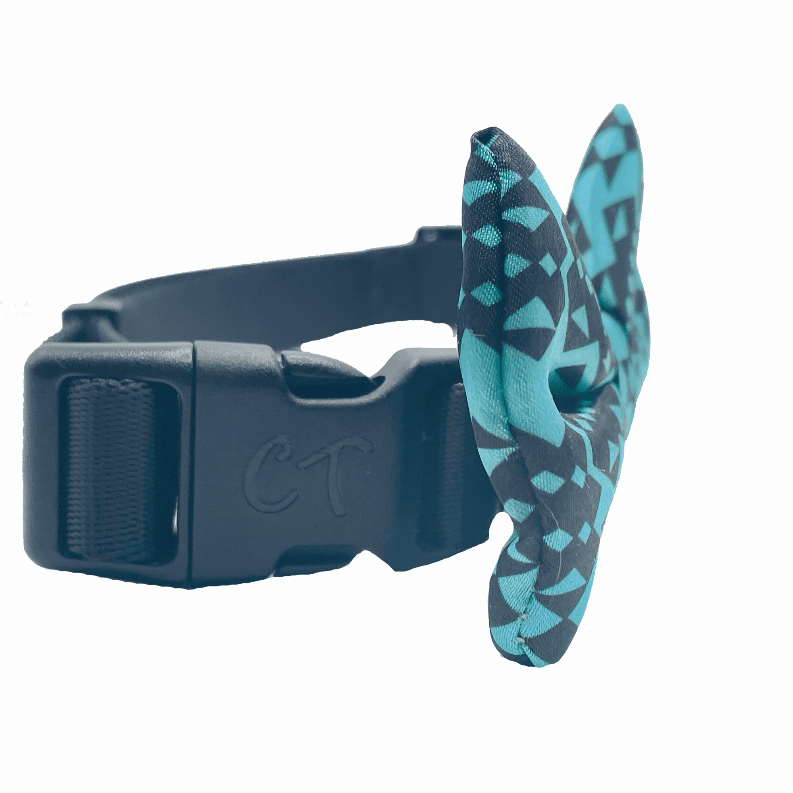 Our bow ties are made with high-quality fabric and thickly sewn; contributing to its durability. All bow ties are 2" x 4" and fastens securely over any dog collar easily with the two elastic loops on the back of the bow tie - as seen in pictures. Collar not included.